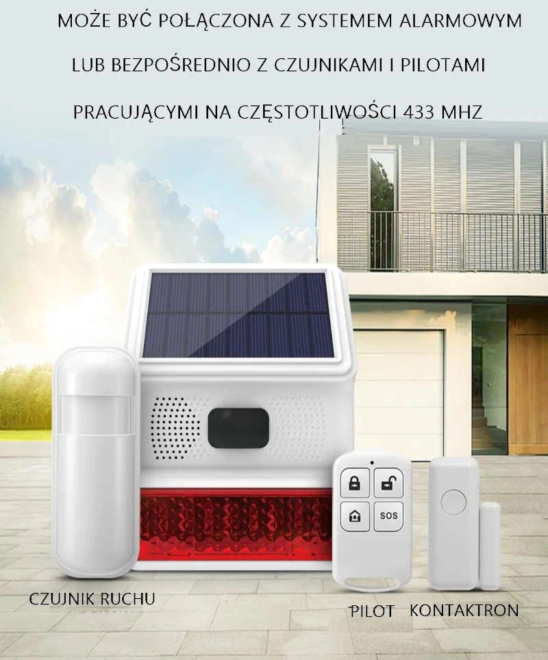 Solarna Bezprzewodowa Syrena Zewnętrzna 433MHz WSR200