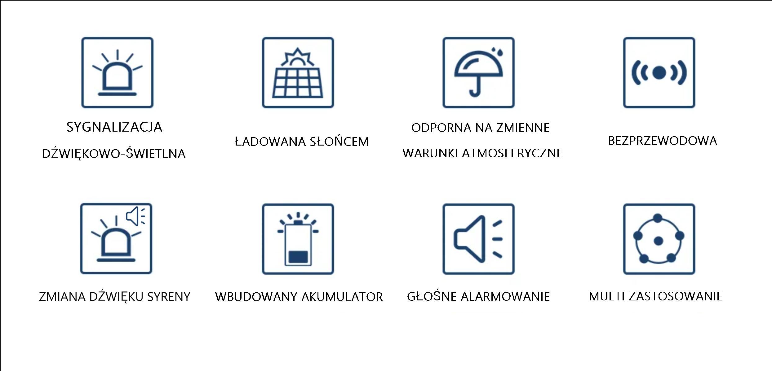 Bezprzewodowa syrena zewnętrzna dźwiękowo-świetlna z wbudowanym akumulatorem  – działa z naszymi zestawami alarmowymi 433 MHz – AZ10WG, AZ11WG , P70-4G/LTE, TUGARD G20 oraz wybranymi czujnikami i pilotami 433MHz.