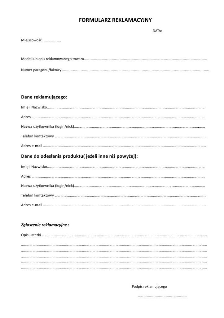 * Formularz reklamacyjny: